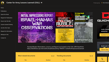 CALL leads the Army Lessons Learned Program and delivers timely and relevant information to resolve gaps, enhance readiness, and inform modernization. CALL's website contains many resources such as AARs, Best Practices, Handbooks, and Request for Information submission page.
